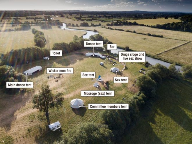 Gazete, pagan temalarının ağırlıkta olduğu etkinlik alanında birçok farklı çadır olduğunu, uyuşturucu etkisindeki gençlerin çadırlarda seks şovlarına katıldığını aktardı.