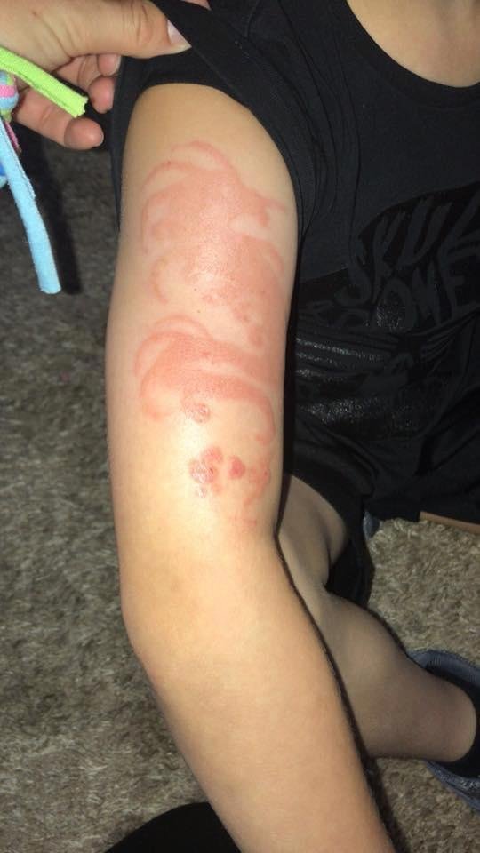 Çocuklarının fotoğrafını Facebook üzerinden paylaşan Feeney, “Diğer aileleri uyarmak için bu fotoğrafları yükledim. Siyah kınadaki kimyasal oranı çok yüksek. Keşke çocuklara dövme yaptırmasaydım, şu an vücutlarında yanık oluştu ve çocukların tedavi süreci çok yavaş ilerliyor” dedi.