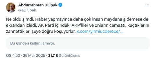 Eski Yeni Akit gazetesi yazarı Abdurrahman’dan Dilipak, cumartesi günü CHP’nin gerçekleştirdiği Maltepe mitingi üzerinden AKP’ye göndermede bulundu.
