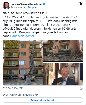 AHMET ERCAN: “BAŞKA BİR DEPREM SINDIRGI’DA HASAR BIRAKIR”
