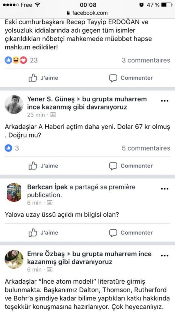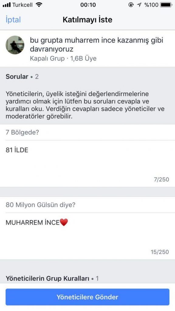 CHP’nin cumhurbaşkanı adayı Muharrem İnce’nin yenilgisini kabullenemeyen sosyal medya kullanıcıları, Facebook’ta kurdukları ‘Bu grupta Muharrem İnce kazanmış gibi davranıyoruz’ grubunda yaptıkları sıra dışı açıklamalarla sosyal medyanın gündemine oturdu.