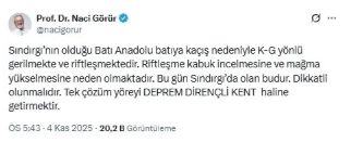 “Sındırgı’nın bulunduğu Batı Anadolu, batıya doğru kaçış nedeniyle kuzey-güney yönlü gerilme altındadır. Bu durum kabuğun incelmesine ve magmanın yükselmesine yol açmaktadır. Bugün Sındırgı’da yaşananlar da bunun sonucudur. Dikkatli olunmalı; bölgeyi deprem dirençli kent haline getirmek dışında bir çözüm yoktur.”