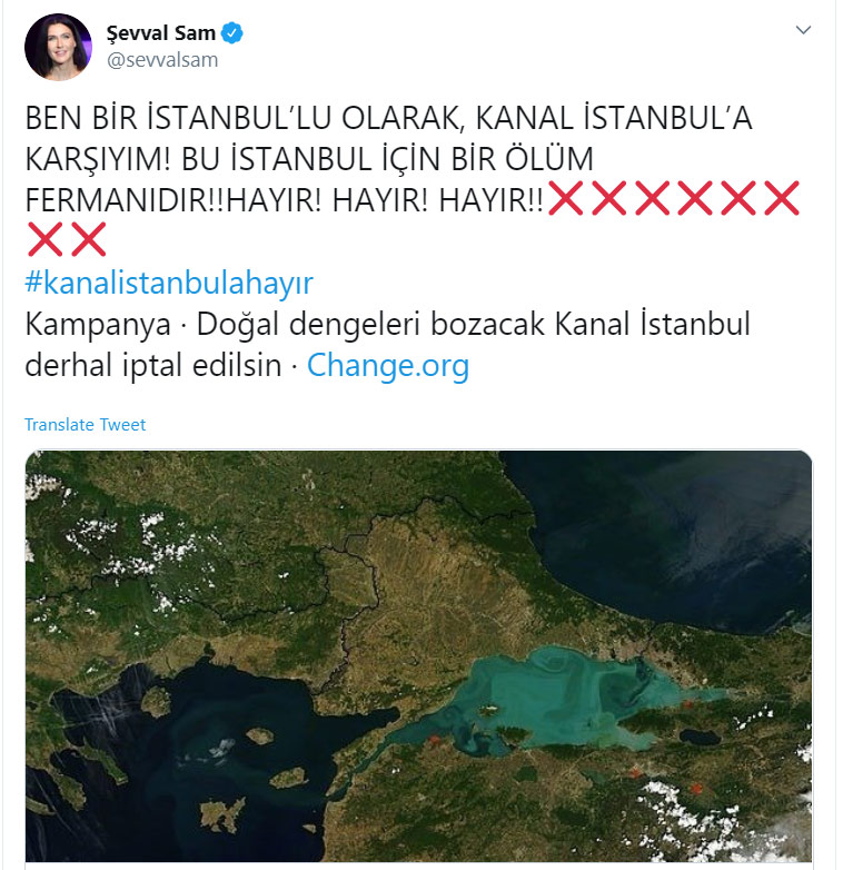 Ünlü Sanatçı Şevval Sam, Kanal İstanbul projesine ilişkin sosyal medyada kampanya başlattı.