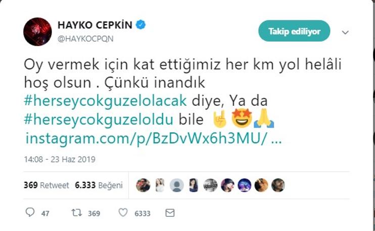 10 milyonu aşkın İstanbullu yenilenen belediye seçimi için tekrar sandık başına gitti. Ekrem İmamoğlu’nun İstanbul Büyükşehir Belediye Başkanı seçilmesini ünlüler sosyal medya hesaplarında kutladı.
