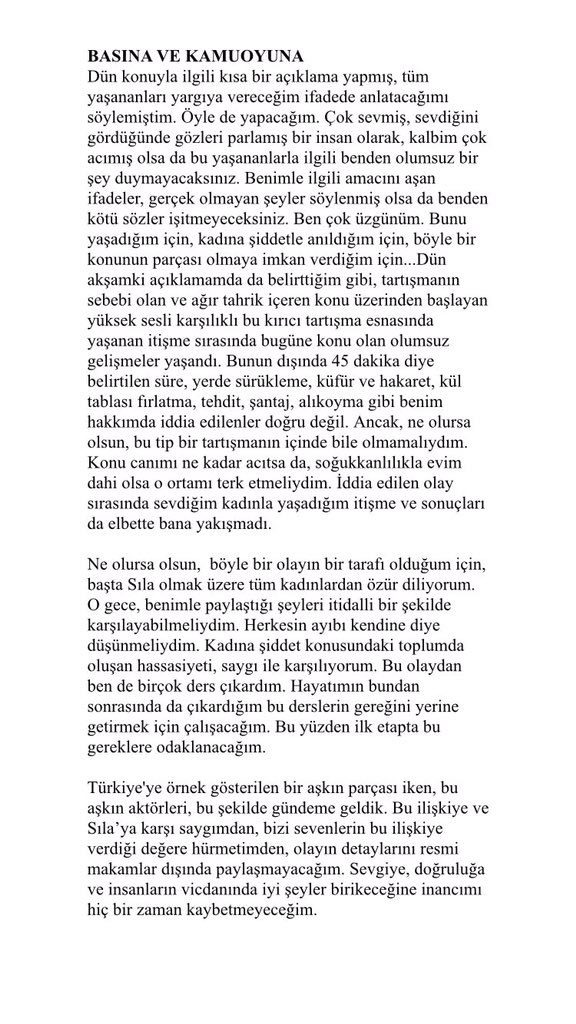 Oyuncu sevgilisi Ahmet Kural tarafından darp edildiğini iddia eden sanatçı Sıla Gençoğlu, adliyeye giderek Kural’dan şikayetçi olmuştu. Yaşanan bu üzücü olayın ardından Ahmet Kural, sosyal medya hesabından bir açıklama yaparak, başta Sıla olmak üzere tüm kadınlardan özür dilediğini belirtti. İşte Kural’ın açıklaması;