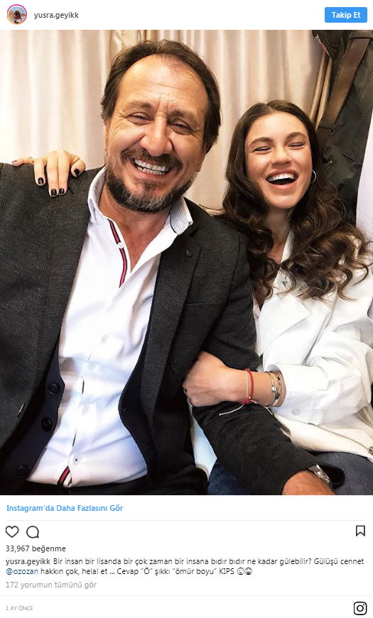 Yüsra Geyik paylaşımın altına “Bir insan bir lisanda, birçok zaman bir insana bıdır bıdır ne kadar gülebilir? Gülüşü cennet Özgür Ozan, hakkın çok, helal et.” notunu düştü.