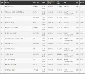 Aynı gün ekranlara gelen Kalk Gidelim, Erkenci Kuş ve Yeni Gelin gibi dizilerin çok arkasında kalıp, 2.89 reyting alarak kendisine 12. sırada ye buldu.