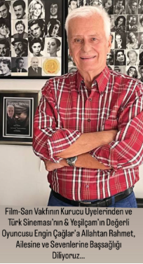 Vakıf paylaşımında, “Film-San Vakfının Kurucu Üyelerinden ve Türk Sineması’nın & Yeşilçam’ın Değerli Oyuncusu Engin Çağlar’a Allah’tan Rahmet, Ailesine ve Sevenlerine Başsağlığı Diliyoruz…” ifadelerine yer verdi.