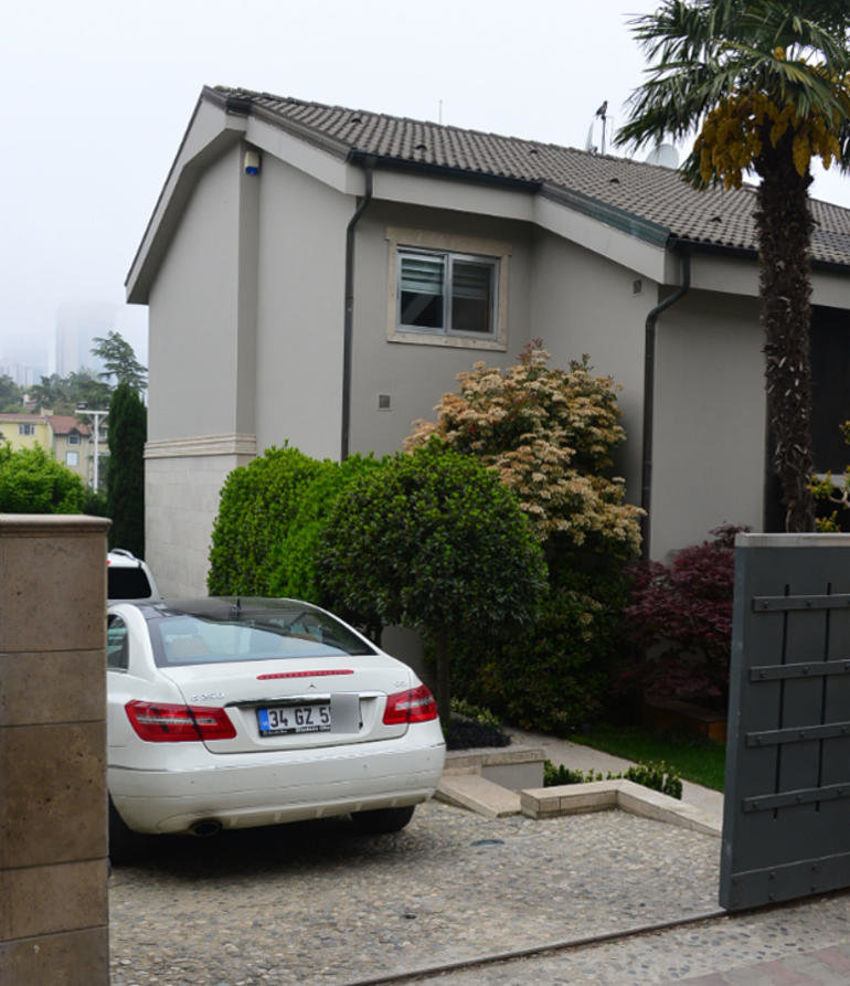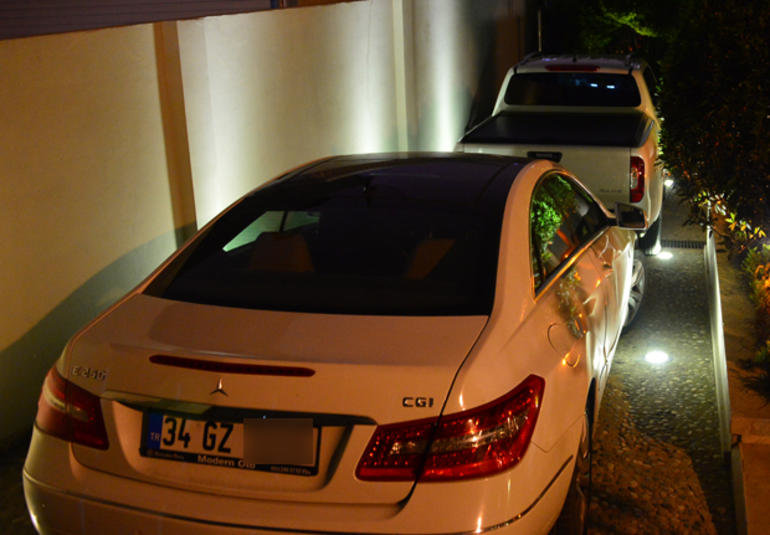 Gazetecilerin kendilerini fark etmemesi için Defne Samyeli’nin Mercedes marka aracını garaja alan Cem Yılmaz, özel plakalı kendi cipini ise sokağa park etti.