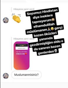 Kızının sağlık sorunlarıyla ilgilenmediği yönündeki haberlerle gündeme gelen ve sonrasında da eski eşiyle medya üzerinden uzun soluklu bir tartışma yaşayan Ceren Hindistan sosyal medya hesabı üzerinden takipçilerinin sorularını yanıtladı. Bir takipçisinin kendisine yönelttiği ‘Müslüman mısınız?’ sorusuna yanıt veren Hindistan şu ifadeleri kullandı: