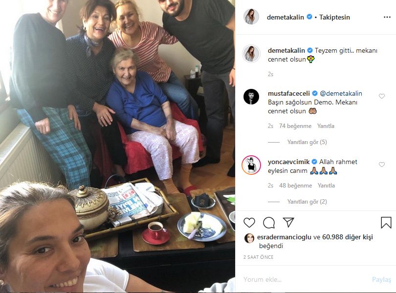 Şarkıcı Demet Akalın, sosyal medya hesabı üzerinden yaptığı paylaşımla teyzesinin hayatını kaybettiğini duyurdu.