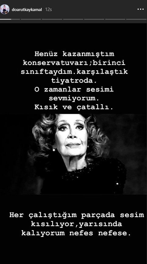 Akciğer rahatsızlığı nedeniyle bir süredir tedavi gören 91 yaşındaki Yıldız Kenter, Amerikan Hastanesi’nde dün saat 19.00 sıralarında hayata veda etti. Türk tiyatrosunun acı kaybının ardından sosyal medya taziye mesajlarıyla dolup taştı. Pek çok ünlü ismin hocası olan Yıldız Kenter’in ardından paylaşımda bulunan bir isim de Doğa Rutkay Kamal oldu. Onunla yaşadığı bir anısını Instagram hesabı üzerinden paylaşan Doğa şu satırları paylaştı: