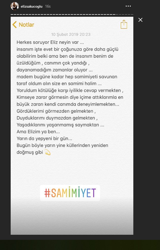 Eliz Sakuçoğlu paylaştığı bu uzun yazının ardından bu defa kadın ve kadıncık arasındaki farkları sıraladı bir yerden yaptığı alıntıda kadın ve kadıncık arasındaki farkı 10 maddede açıklayan Sakuçoğlu sonrasında da adam olmak üzerine paylaşımda bulundu. Takipçilerine duygusal anlamda yoğun bir gün geçirdiğini söyleyen Sakuçoğlu bununla ilgili yapılan yorumları da yanıtsız bırakmadı…