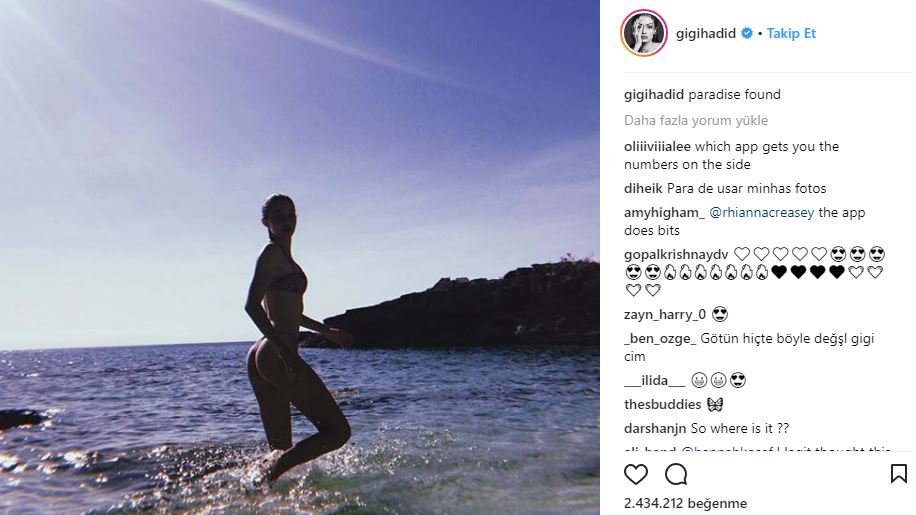 Hadid’in “Cenneti buldum” notuyla paylaştığı fotoğraf, Gigi’nin takipçi tarafından da çok beğenildi.