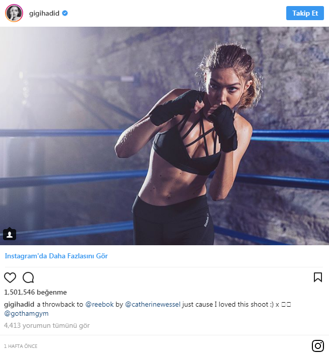 Güzel model Gigi Hadid perşembe günü paylaştığı fotoğraflarla bir kez daha kendine hayran bıraktı.