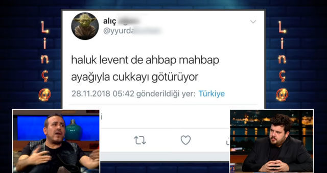 TV8’de ekrana gelen, Eser Yenenler’in sunduğu EYS Show’un bu haftaki bölümüne Haluk Levent konuk oldu. Programın ‘Linç et’ bölümünde Levent hakkında atılan tweetler yayınlandı. O tweetlerden bir tanesi de kurucusu olduğu Anadolu Halk ve Barış Platformuyla (AHBAP) ilgiliydi.