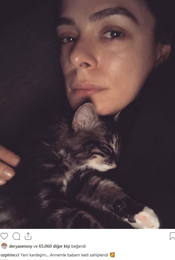 Sosyal medya hesabı üzerinden yaptığı paylaşımlarla hayvan sevgisinin ne boyutta olduğunu gösteren hatta geçen yaz bir de eşek yavrusu sahiplenen Özge Özpirinçci bu defa ailesinin hayvan sevgisini gösteren bir paylaşıma imza attı. Kucağında yavru bir kedi ile çekilmiş fotoğrafını Instagram hesabı üzerinden paylaşan güzel oyuncu bu yürekleri ısıtan kareye: “Yeni kardeşim… Annemle babam kedi sahiplendi” notunu düştü.