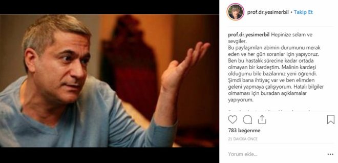 Bu paylaşımları abimin durumunu merak eden ve her gün soranlar için yapıyoruz. Ben bu hastalık sürecine kadar ortada olmayan bir kardeştim. Malinin kardeşi olduğumu bile bazılarınız yeni öğrendi. Şimdi bana ihtiyaç var ve ben elimden geleni yapmaya çalışıyorum. Hatalı bilgiler olmaması için buradan açıklamalar yapıyorum. Dünden beri çeşitli açıklamalar yapılıyor. ‘Gırtlağı delindi’, ’40 kg verdi’, ‘Organları çöktü’ gibi… Hastanede hastamızı beklerken ziyarete gelen dostları ile bazı şeyler paylaşılıyor, bunlar bazen çok detay bilgiler olabiliyor. Bu bilgilerin başkaları ile paylaşılması bana göre hiç doğru değil. ‘Gırtlağı delindi’ olarak iletilen şey ‘trakeostomi’dir. Uzun süre yoğun bakımda kalan hastalara daha iyi solunum desteği yapılması için uygulanır. Belli bir süre sonra normal hale döner.
