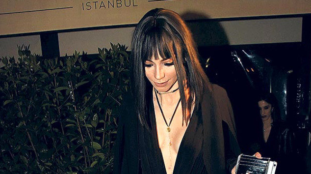 Gece yarısı mekanı terk eden Boluğur, derin göğüs dekolteli siyah elbisesiyle dikkat çekti.