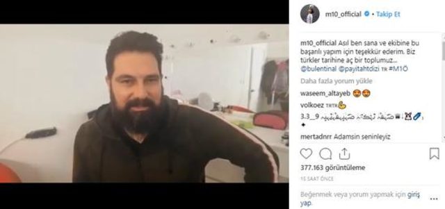 Mesut da İnal’ın videosunu Instagram hesabından paylaştı. İnal, mesajında “Kıymetli Mesut Özil kardeşim, Payitaht: Abdülhamid setinden sana sevgi ve saygılarımızı gönderiyoruz. Diziyi takip ettiğini, izlediğini biliyoruz. Çok teşekkür ediyoruz paylaşımların için. İnşallah bir gün yolun düşerse sete de bekleriz. Her zaman başarıların bizi gururlandırıyor. İnşallah bundan sonra da çok başarılı bir spor hayatın olur.” ifadelerini kullandı.
