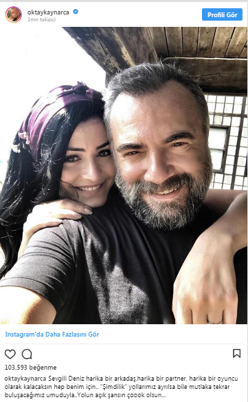 Oktay Kaynarca da partnerinin ayrılmasının ardından Deniz Çakır’la ilgili bir veda mesajı paylaştı. Oyuncu Deniz Çakır , ilk açıklamasında, “Bu maceranın sonuna geldik. Emeğime saygı duyan, bu macerada yol arkadaşım olan herkese bin minnet… Ben duruşumdan taviz vermeden ve omurgalı bir birey olmanın erdemiyle yoluma devam edeceğim” dedi. Oktay Kaynarca da kayıtsız kalmadı Özel hayatındaki spekülasyonlar nedeniyle Eşkıya Dünyaya Hükümdar Olmaz dizisindeki rolüne yapımcı Raci Şaşmaz tarafından son verilen oyuncu Deniz Çakır , böyle bir açıklama yapma gereği duyarken dizideki partneri Oktay Kaynarca da hesabından yazdıklarıyla Çakır’a seslendi. İşte o satırlar: “Sevgili Deniz harika bir arkadaş,harika bir partner, harika bir oyuncu olarak kalacaksın hep benim için.. ‘Şimdilik’ yollarımız ayrılsa bile mutlaka tekrar buluşacağımız umuduyla..Yolun açık şansın çoook olsun…”