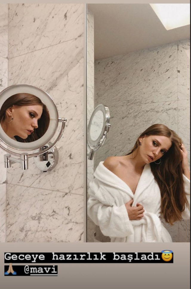 Ünlü oyuncu Serenay Sarıkaya da bornozlu fotoğrafını sosyal medya hesabından paylaştı.