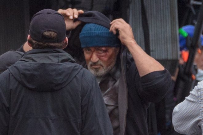 Setten çekilen fotoğraflarda efsane ismin suratındaki yaralar göze çarptı. Filmde Sylvester Stallone çocuk yıldız Javon “Wanna” Walton eşlik ediyor.