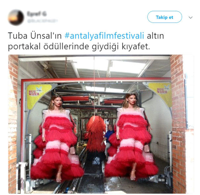 Yorumlardan bazıları şöyle: “Benzincideki oto yıkama fırçası mı o?”, “Lunaparktaki etek kadın gibi”, “Tuğba çuval bile giyse yakışır.”