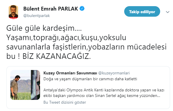 Güle güle kardeşim…. Yaşamı,toprağı,ağacı,kuşu,yoksulu savunanlarla faşistlerin,yobazların mücadelesi bu ! BİZ KAZANACAĞIZ.