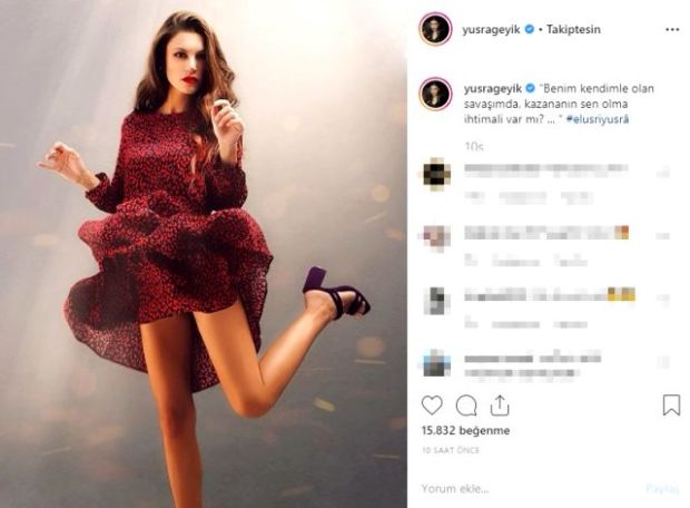 Yüsra Geyik’in fotoğrafı kısa sürede sosyal medyaya damga vururken “Taş gibi kızsın”, “Harikasınız” ve “Çok güzelsin” yorumları yapıldı. Geyik’i Arka Sokaklar dizisinden takip eden bazı takipçileri ise “Başkomiser Çoban görmesin” yorumunu yaptı.(acunn.com)