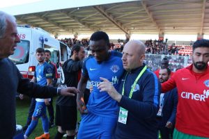 Batman Yeni Şehir Stadı’nda Kasımpaşa’nın 3-2 üstünlüğüyle devam eden karşılaşmanın 90+1. dakikasında tribünden atılan dolu plastik su şişesi Koita’nın yüzüne isabet etti.