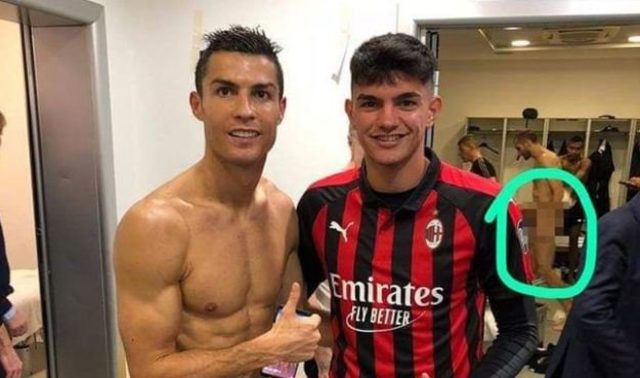 Bu tepki, Milan’da oynayan bir futbolcunun, mağlubiyet sonrası Juventus’un yıldızı ile fotoğraf çektirmesinden kaynaklanmadı. Fotoğrafın arka planındaki bir dikkatsizlik, fotoğrafın sosyal medyada en konuşulan konulardan biri olmasını sağladı. O sırada soyunma odasında formalarını çıkaran futbolculardan Giorgio Chiellini, fotoğrafın çekildiğinin farkında olmadan üstünü değiştirmeye başladı.