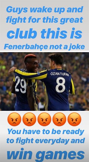 Nijeryalı oyuncu Instagram hesabından yaptığı İngilizce yaptığı paylaşımda, “Ayağa kalkın ve bu büyük kulüp için savaşın. Fenerbahçe bu şaka değil. Fenerbahçe’de oynuyorsanız her gün savaşmaya ve kazanmaya hazır olmalısınız” ifadelerini kullandı.