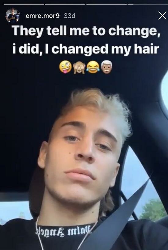 Emre Mor’un yaptığı paylaşımda, “Değiştirmemi söylediniz, ben de yaptım, saç rengimi değiştirdim.” ifadeleri yer aldı.