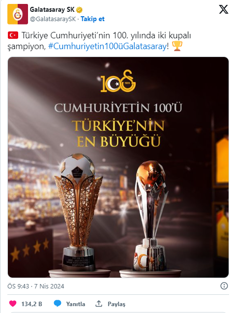 Saat 21.50: Galatasaray’ın şampiyonluk paylaşımı: