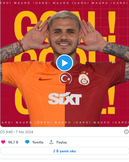 Saat 21.40: Galatasaray’dan, Icardi’nin gol paylaşımı:
