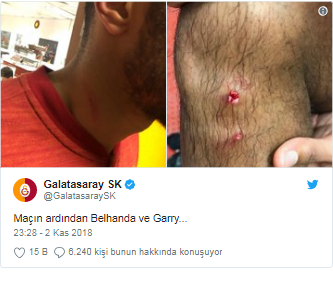 Fotoğraflarda Belhanda’nın boynunda kızarıklık görülürken, Rodrigues’in bacağında ise iki adet krampon çivisi deliği görüldü. Galatasaray paylaşımda, “Maçın ardından Belhanda ve Garry…” ifadelerini kullandı.