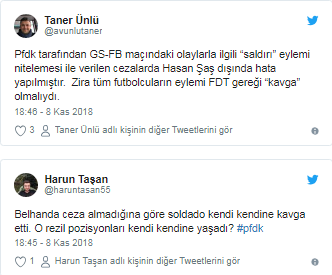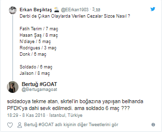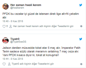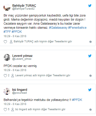 İşte sosyal medyada PFDK’nın verdiği Galatasaray-Fenerbahçe maçı için verilen cezalara yapılan yorumlardan bazıları:
