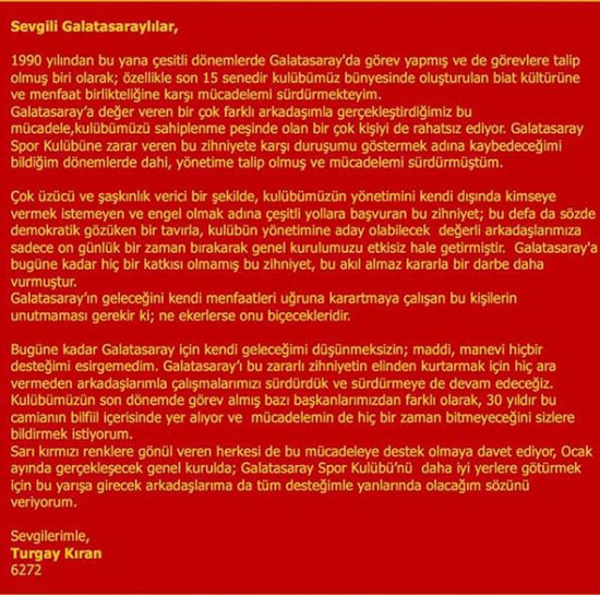 Turgay Kıran, Galatasaray başkan adaylığından çekildi!