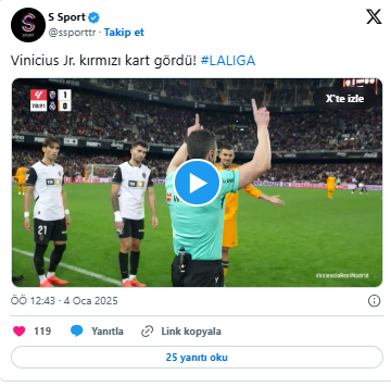 La Liga’da sel felaketi nedeniyle ertelenen 12. hafta maçında Real Madrid Valencia’nın konuğu olurken, kırmızı kart gören Vinicius Jr. hakemin üzerine yürüdü.